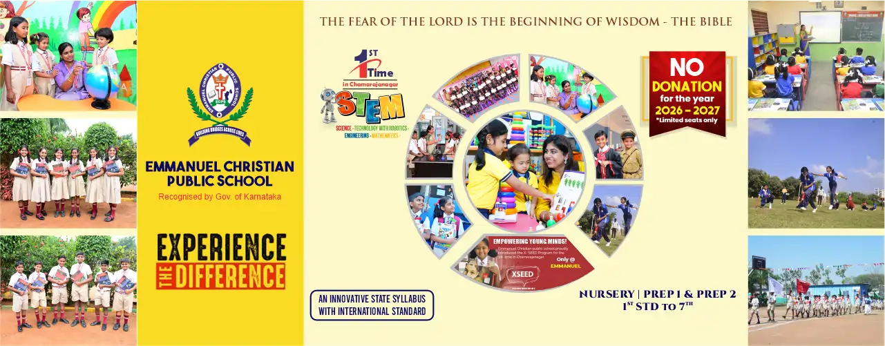 Emmanuel Christian Public School (ECPS), Chamarajanagar is one of the leading English medium schools dedicated to academic excellence, character development, and holistic education. We focus on developing confident, knowledgeable, and value-driven students prepared for future success.Located in Prashanth Nagar, Chamarajanagar, ECPS provides a safe learning environment with modern teaching methods, smart classrooms, sports programs, and individual attention to every child.